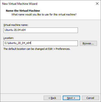 Enter the Virtual machine name and Location to install